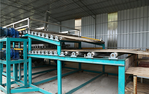 三层单板干燥机是单板及胶板生产过程中的主要设备之一,单板干燥质量直接影响贴面板、胶合板产品质量,原理是单板在上下两片盘管的夹持下预热干燥,盘管通过蒸汽或者导热油升温把温度传递到单板,高温盘管与湿单板直接接触、热效率高、热损小,单板受热均匀,木材收缩的良性物理过程中蒸发,因此单板烘干后含水率均匀,木材色泽好、内外一致,不会产生开裂、弯曲、变形。适合烘干杨木皮,松木皮,桉木皮等,利用热传导直接加热单板,干燥质量和干燥效率得到很大提高。