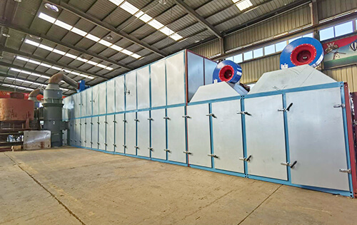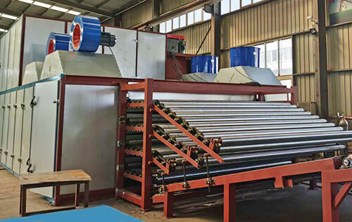 3、燃烧的尾气温度应在210度以上,利用此温度经过除尘设备后直接送到各个运转辊筒内,使各个辊筒的温度达到170度左右,当水板喂进辊筒内,此时的水板表面水分经过加热辊筒时会迅速蒸发,也给单板缩短了预热过程,使烘干效果再次大幅度提升。